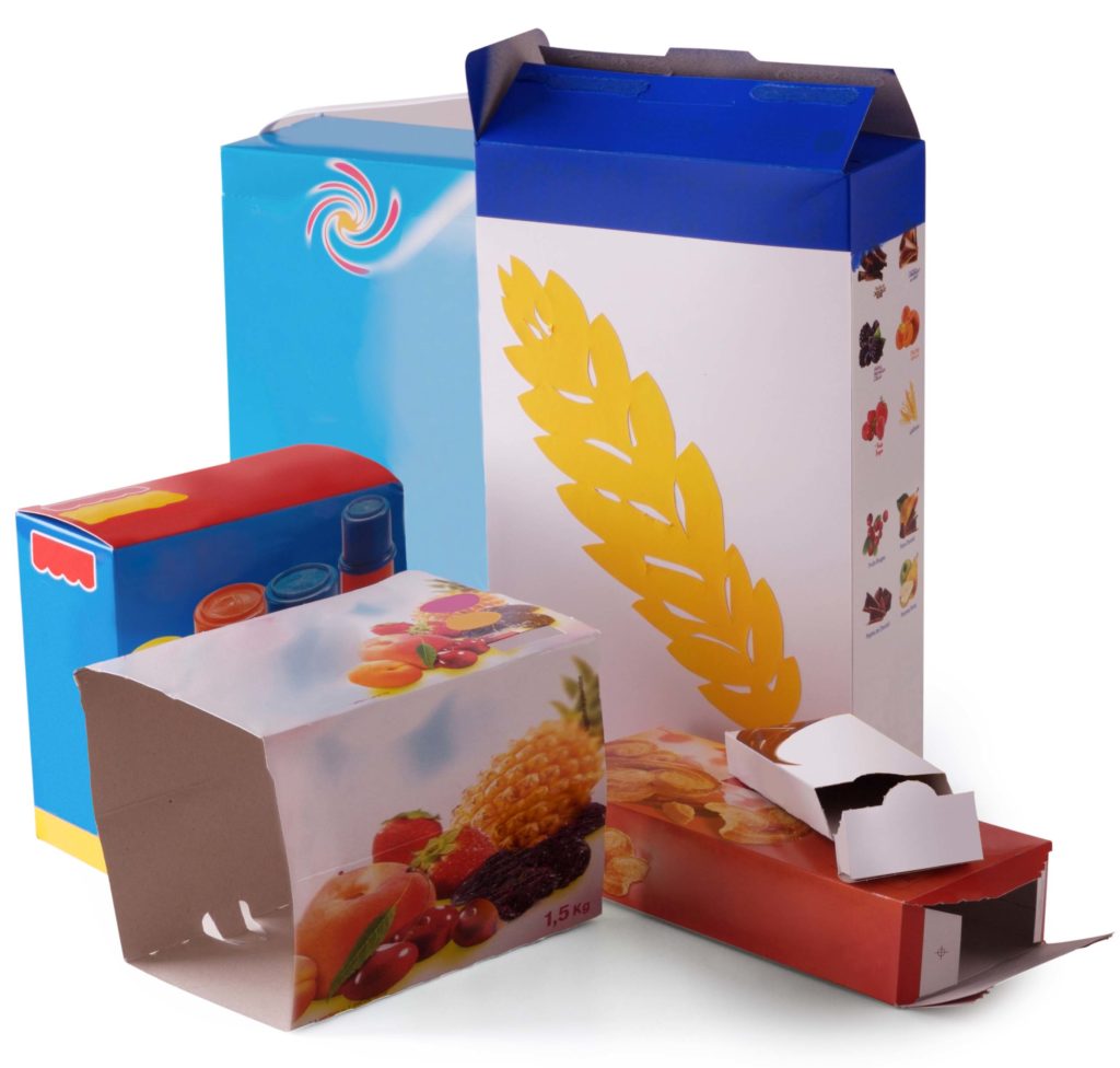Boîtes de céréales, de gâteaux, de biscottes, emballages en carton entourant les pots de yaourt…