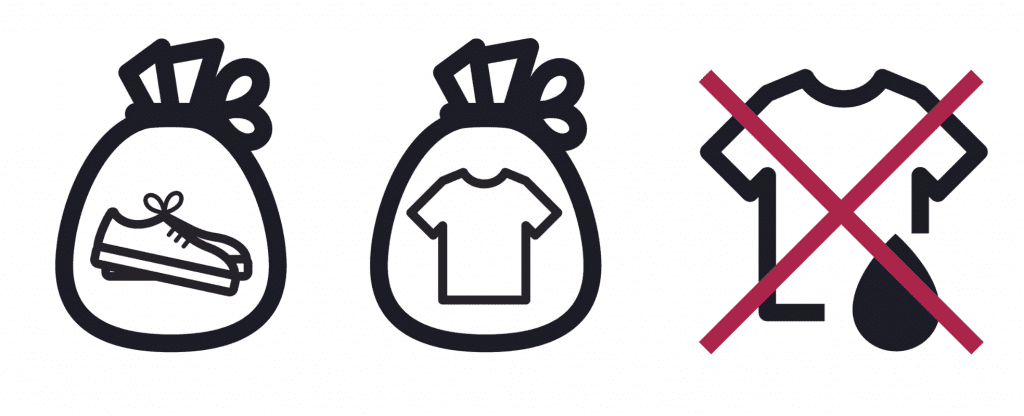 Les vêtements et le linge de maison propres et secs sont à déposer en dans un sac fermé (30L).